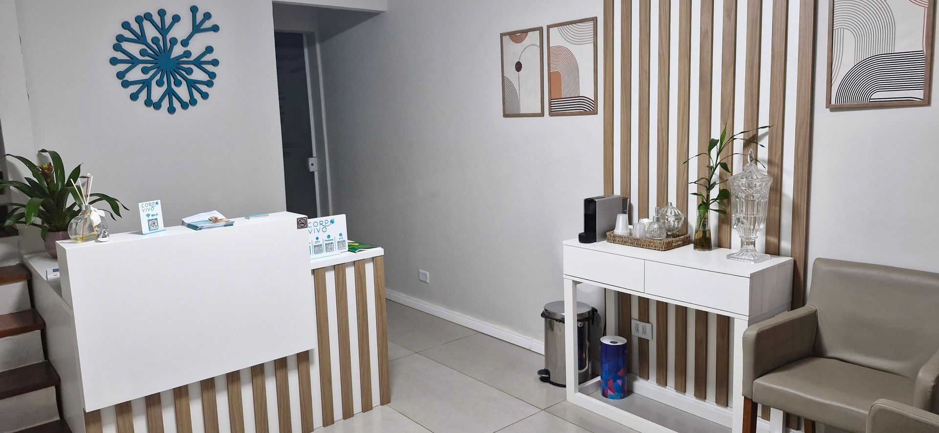 A Clínica Corpo Vivo foi pensada para acolher com conforto, modernidade e funcionalidade. Sob os cuidados da Dra. Julianna Carrozzino, com 22 anos de experiência, oferecemos um atendimento humanizado, eficiente e focado no bem-estar.