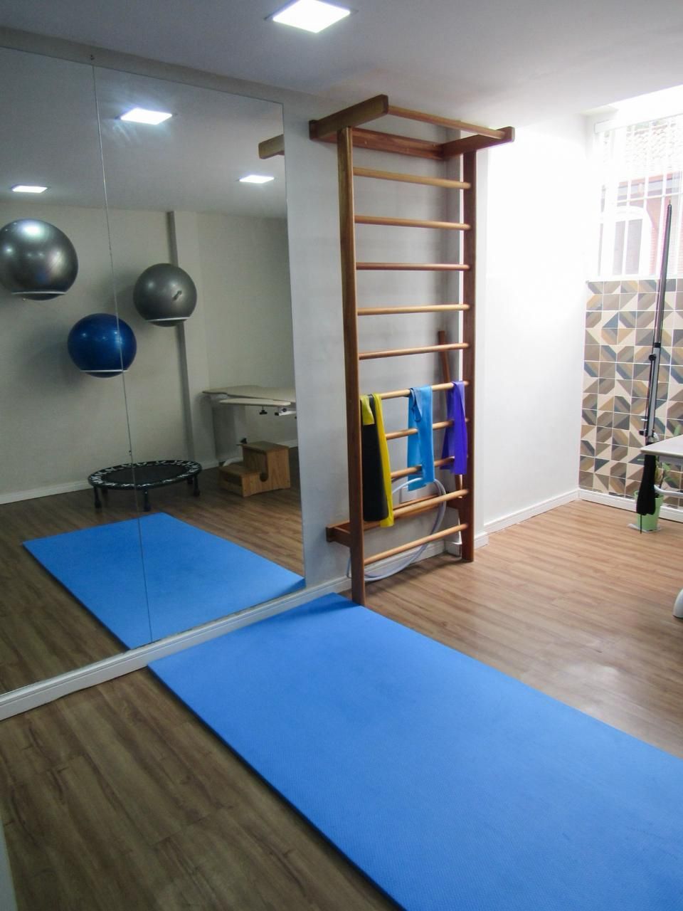 A clínica conta com um espaço moderno e bem equipado para proporcionar o melhor em fisioterapia e reabilitação. Com macas confortáveis, espaldar, bolas, elásticos e diversos equipamentos de apoio, o ambiente foi pensado para oferecer tratamentos personalizados e eficazes, unindo acolhimento e estrutura profissional para o cuidado com a saúde e qualidade de vida.